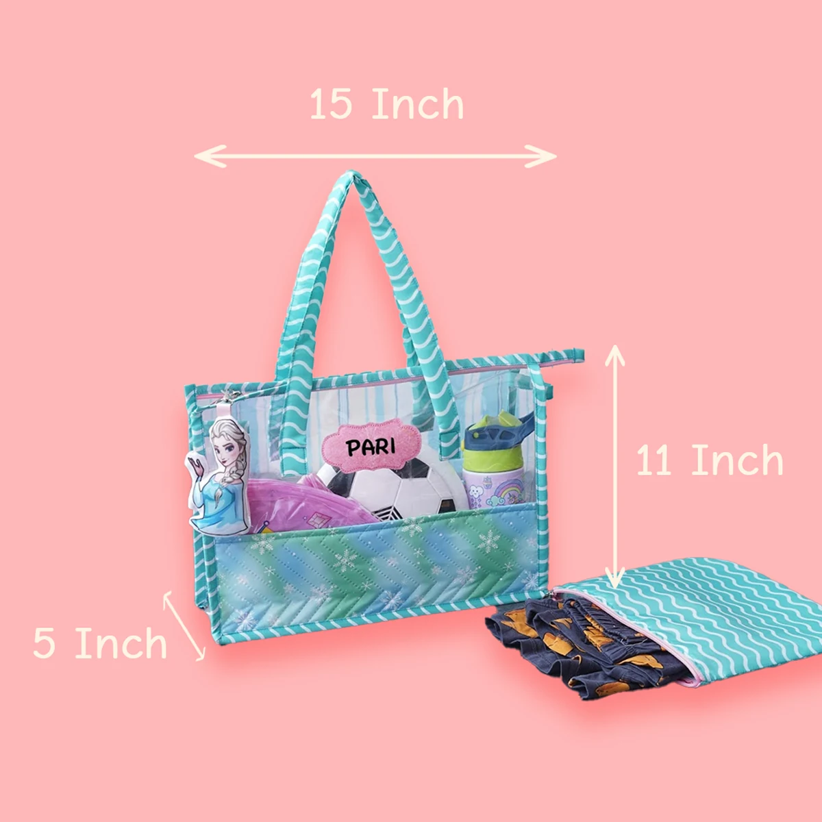 - 1 Toy Keychain – A playful add-on that adds personality and makes the bag instantly recognisable at the pool.